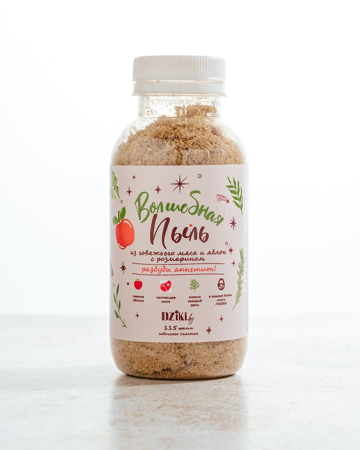 Если ваш питомец перебирает едой или стал плохо есть, «Волшебная пыль» поможет вернуть интерес к миске. Это 100% натуральная посыпка из говяжьего мяса, яблок и розмарина — ароматная, вкусная и полезная добавка к любому корму.